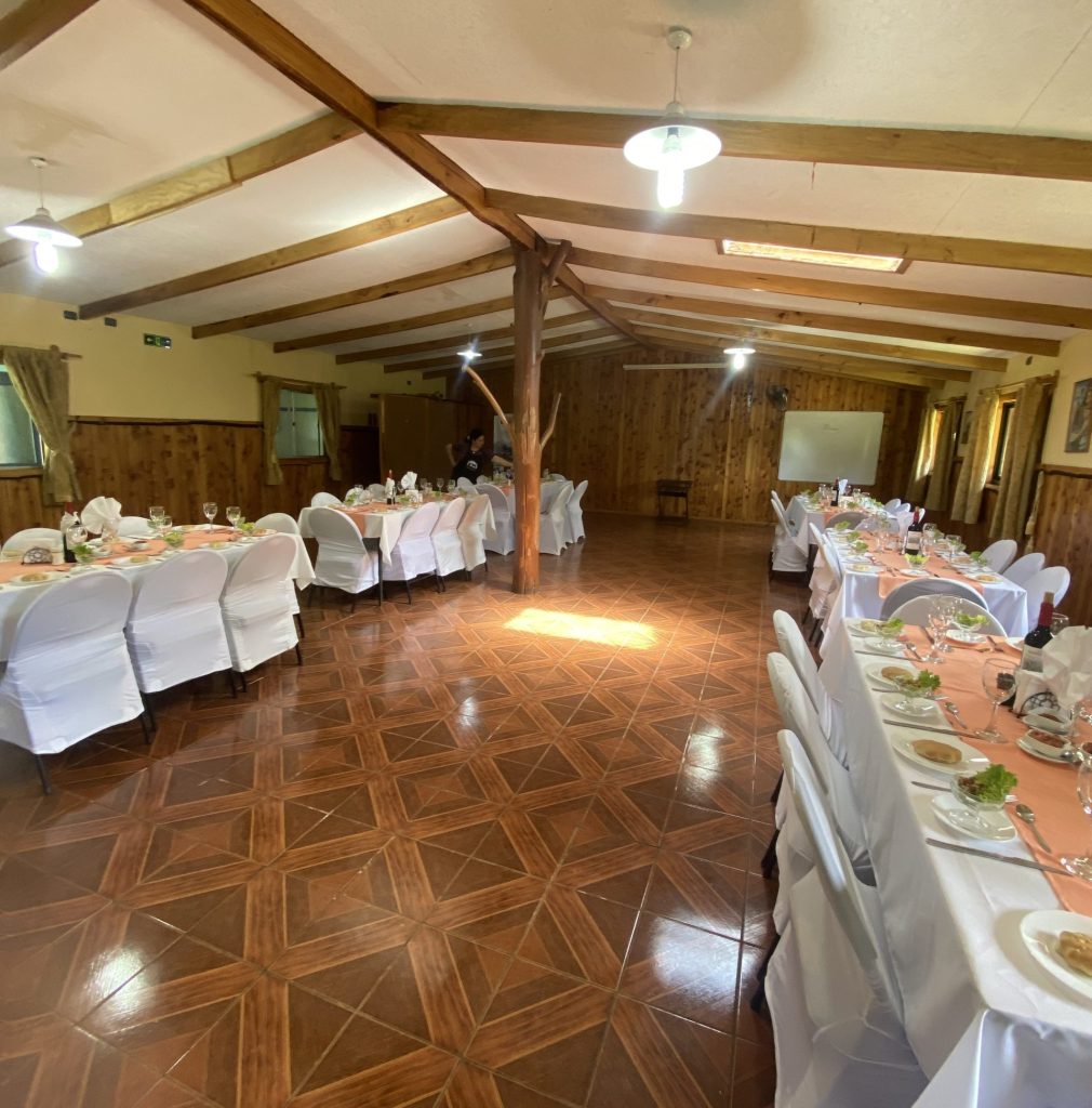 Además cuenta con carpas de eventos, un completo Servicio de banqueterìa (desayuno, coffee break, almuerzo, once y cena), un Hotel especialmente acondicionado para recibir a delegaciones, cómodas cabañas, extensas áreas verdes con espacios para que puedan desarrollar la actividad que necesiten, las que pueden complementar con nuestros talleres de relajación, piscinas, hot-tub, multicancha, senderos y más. Nos especializamos en la atención de grandes grupos con un reconocido servicio de excelencia y calidad.